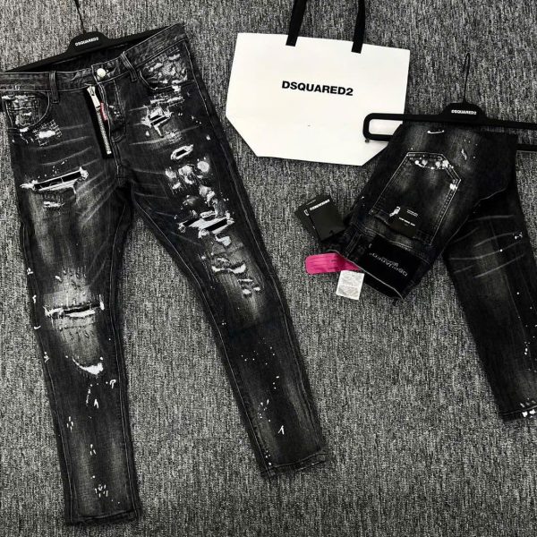 Quần bò D.S.Q..2 đen thời trang rách khói