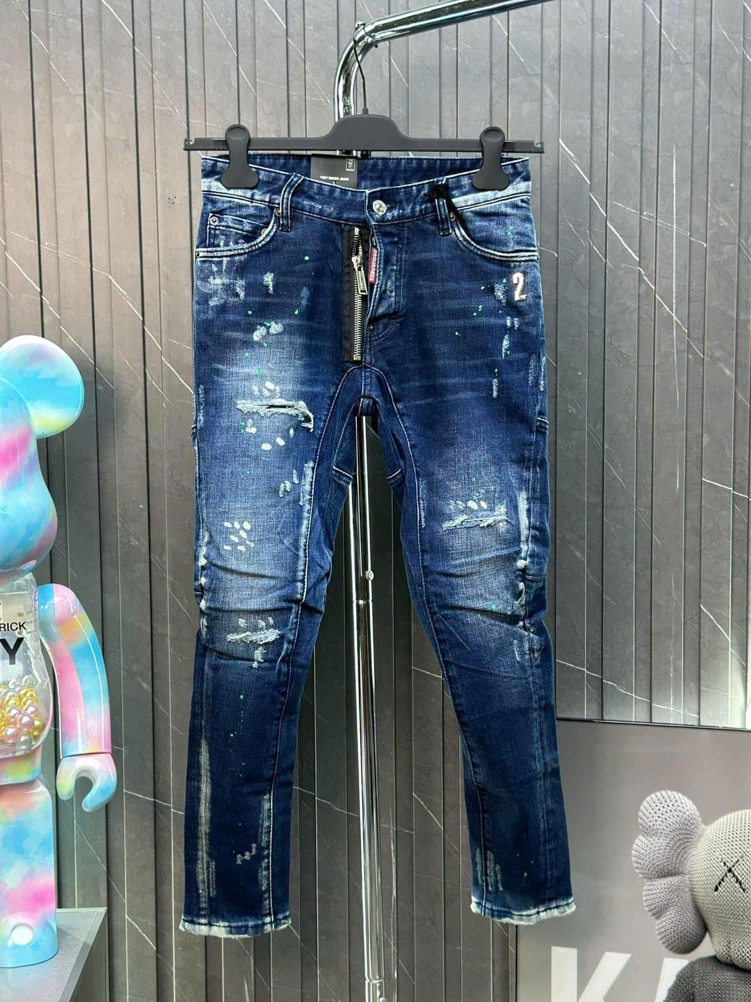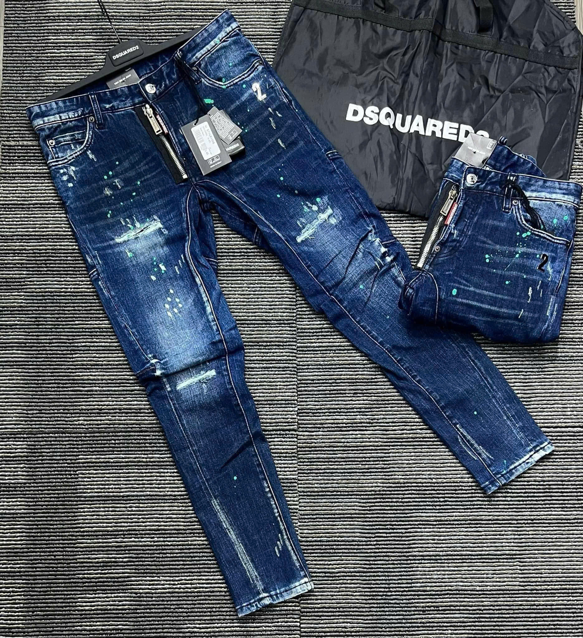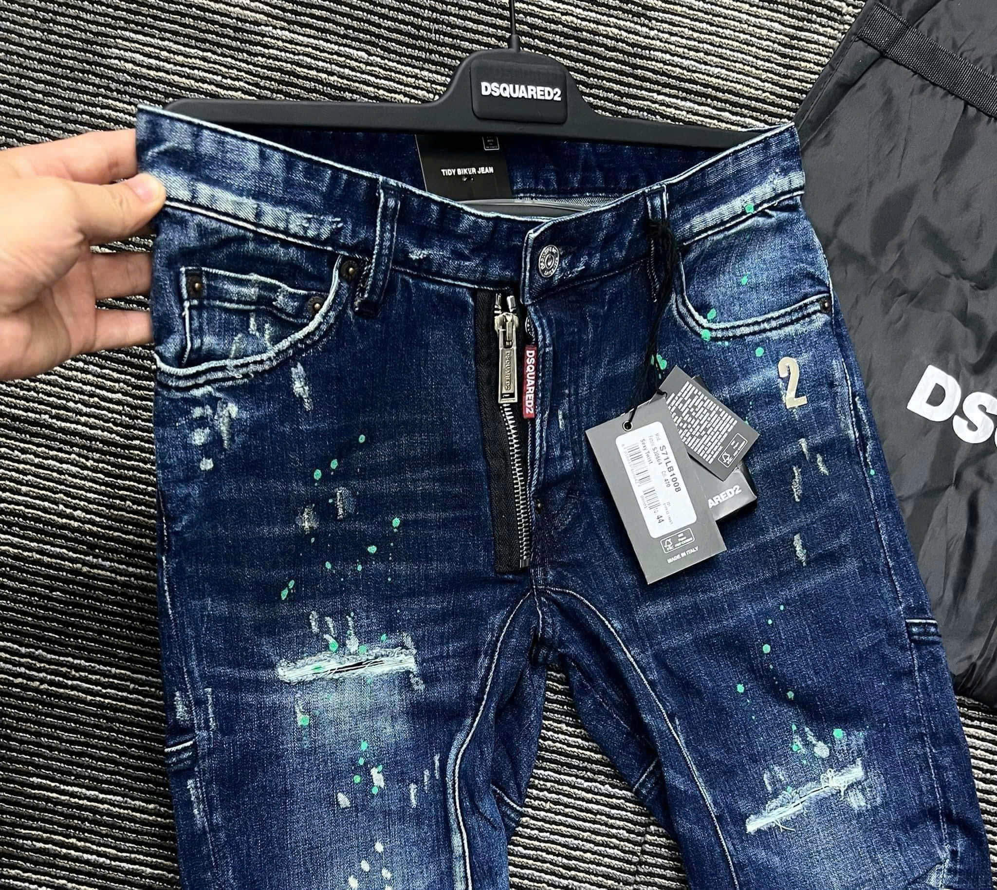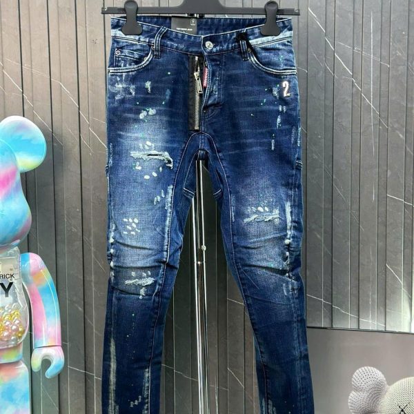 Quần Jeans DSQ2 – Xanh Rách Gối, Sơn Xanh Lá